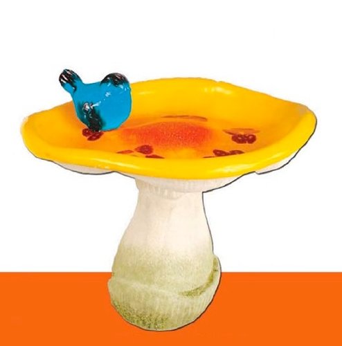 Mushroom Bird Bath for Garden with Bluebird, Indoor or Outdoor 12"x12" Review
