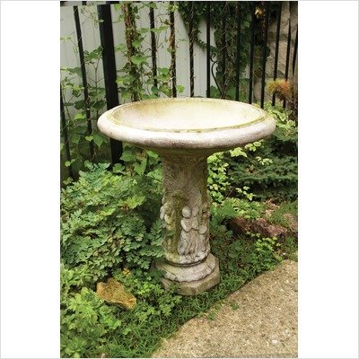 FS8302 Features: -Birdbath. -Birdbaths / fountains collection. -Material: Fiber stone. -Mixture of stone cast directly into the surface, then reinforced with a fiberglass backing. -Carefully stained to give the appearance of age. -Lightweight, extremely durable, less fragile than concrete. -Handmade and outdoor safe. -Made in USA. -Dimensions: 28'' H x 24'' W x 24'' D.