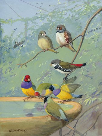 Finches Perch on the Edge of a Birdbath Premium Photographic Poster Print by Allan Brooks, 18x24 Review