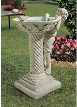 We've never seen a boy who could pass a puddle by! Our young lad climbs barefoot to peek over the wide rim of our pedestal birdbath and mischievously splash a graceful butterfly in this perfect sculptural celebration of childhood summers. Cast in quality designer resin and hand-finished to replicate fine stonework, our artistically rendered Toscano exclusive is a true heirloom investment. 23½""Wx16½""Dx31""H. 28 lbs." Sold Individually Please note: If there is a color/size/type option, the option closest to the image will be shipped (Or you may receive a random color/size/type).